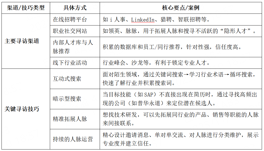 當(dāng)下獵頭的尋訪渠道和技巧更加多元和智能,我將其整理成表格以便你快速了解: